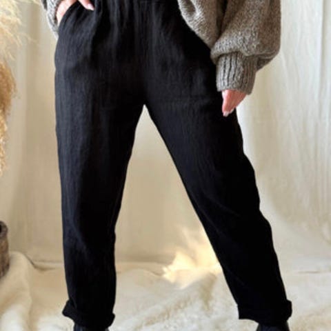 Ny sort pen bukse i lin/viscose. Stikklommer i sidene og glidelås m/hemper i linningen.