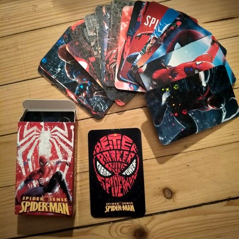To komplette kortstokker og kortspill med Spiderman og Marvel Comics.