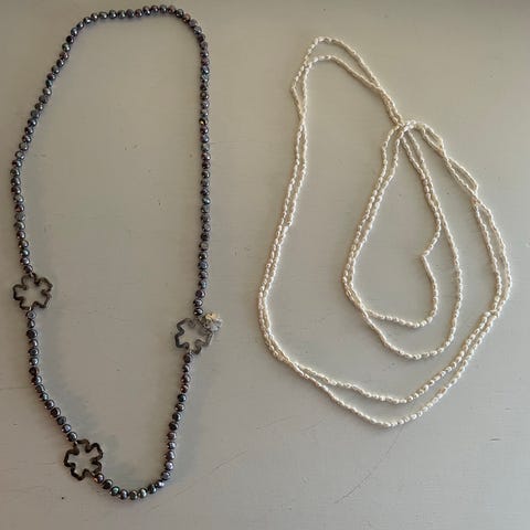 To kjeder med lilla / grå / brune perler ferskvannsperler (?)