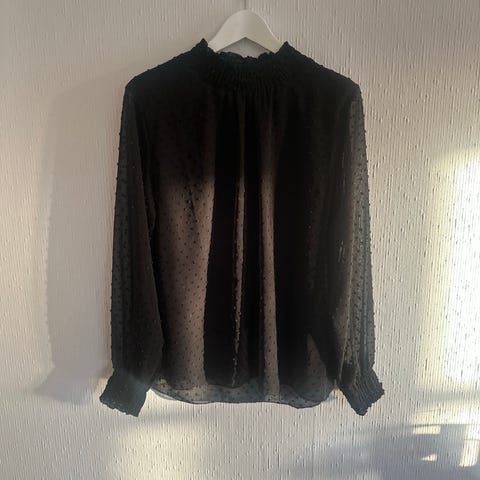 Veldig sort bluse i str L. Flatterende stoff og fasong.. iHar gått med den litt en gang.