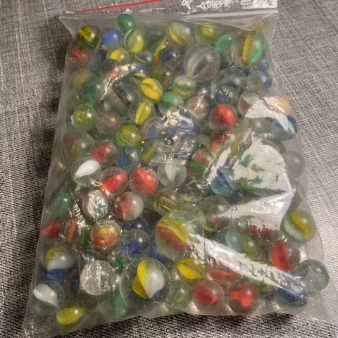 Flotte klinkekuler i glass-fin stand-bud