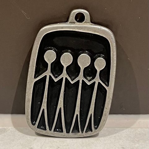 Vintage R. Landerholm tinnsmykke fiskere og fisk motiv