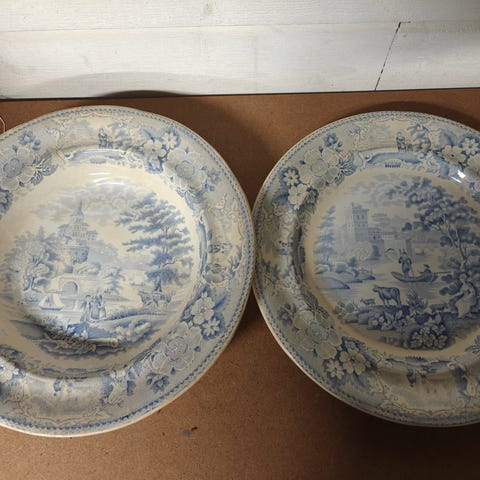Historiske tallerkener med kjente motiv fra Drammen. Se bilder for beskrivelse av motiv. Tegningene er de eneste kjente med Drammensmotiver fra Kjell Aukrust. Les mer om tallerkenene her: https://www.dt.no/nyheter/da-aukrust-tegnet-drammen/s/2-2.1748-1.2648312