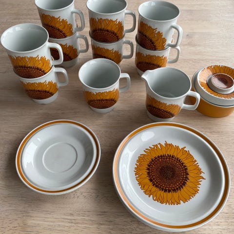 Én tallerken gitt til gode kunder i gave i hvert år fra 1960-1965, fra A/S Ingeniør Gran. Produsert av Stavanger Flint.