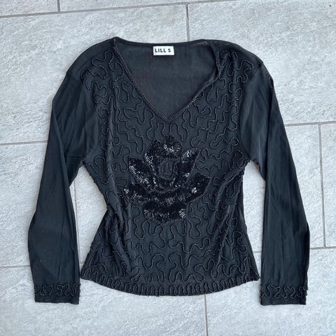 Vintage gul vest med hullmønster fra Miss Sparks, str.L.