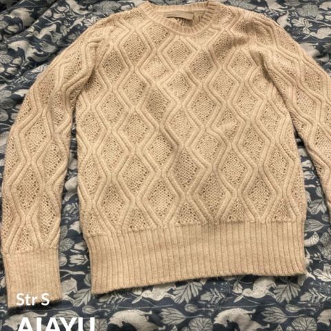 Strikket genser i en lys terracotta farge. Strikket i 100% satul ull og håndlaget i Nepal. Nypris 2300 kr.