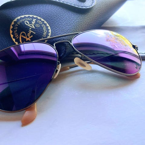 Svært lite brukte Ray-Bans selges. Meget god stand. Farge Polished light Havana og lensen heter Violet Chromance.