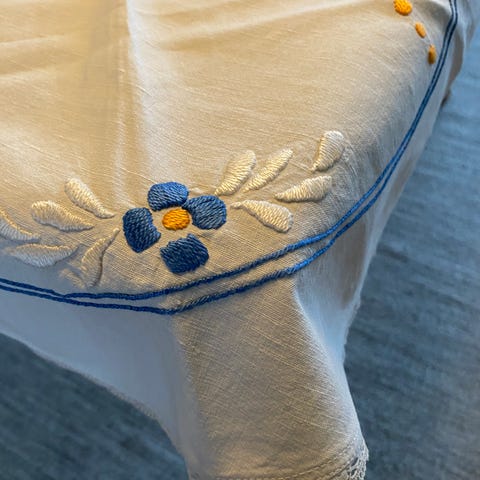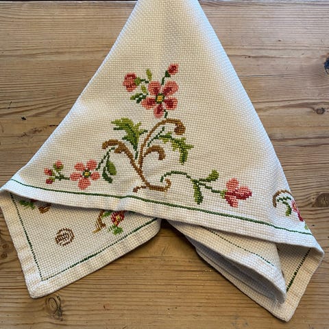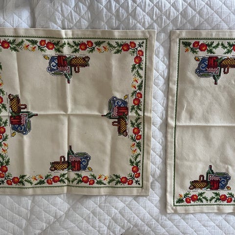 To stk. små, gamle broderte duker. Alle annonser: 3 for 2.