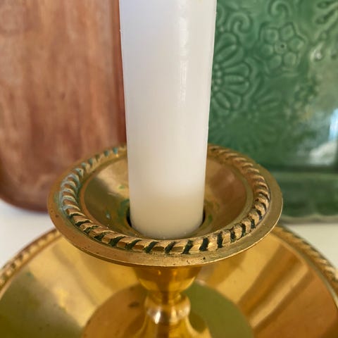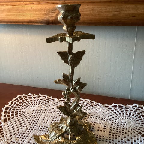 Vakker, gammel, tre-armet lysestake i messing. Alle annonser: 3 for 2.