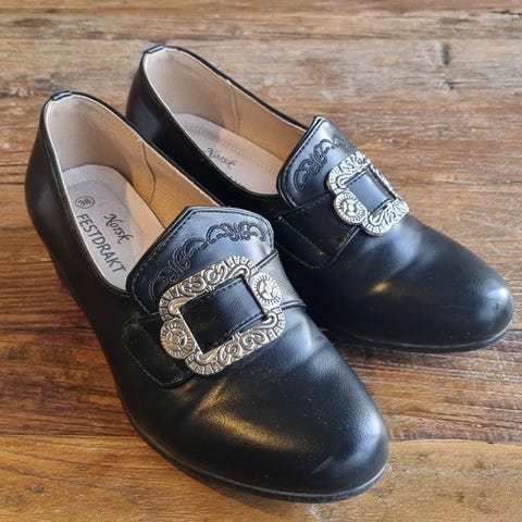 Selger et par med bunadssko fra Sparkjøp. De er brukt en gang, så lite synlig brukt.