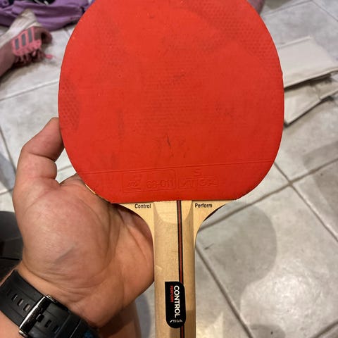 Banda er et merke som produserer bordtennisracketer, og modellen som er synlig på bildet er en Banda Jo Waldner Junior Line.