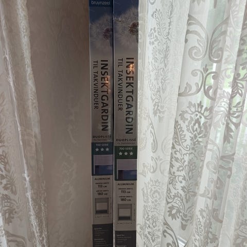 Selger flere uåpnede insektgardiner fra kvalitetsmerket Bruynzeel.