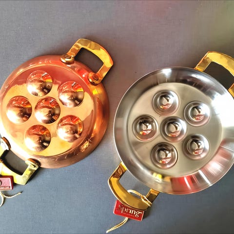 Alle fire panner og seks snegler kan selges samlet for 500 kr.