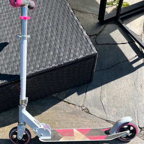 En sparkesykkel som er 74 cm og er for barn det går funker men du ser den er brukt