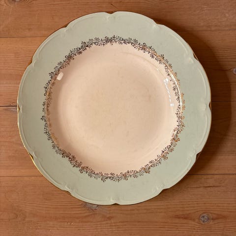 • Enkelt-tallerkener av denne typen selges typisk for 50–100 kr per stk i privatmarkedet (Finn.no, loppemarkeder).