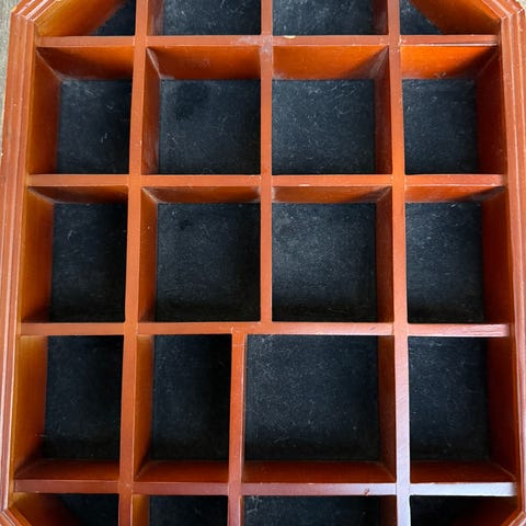De små hyllene inni er 13x13 cm.