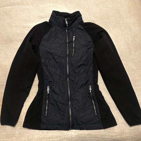 Med glideslås. Har noen små flekker, selges derfor billig.