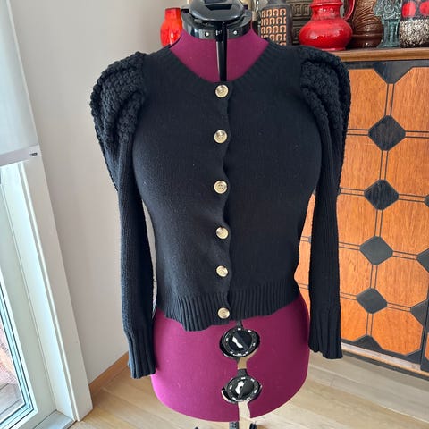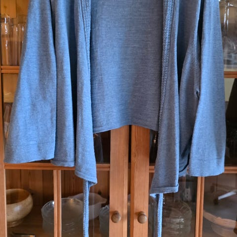 Lett og myk kvalitet i nydelig blåfarge. Åpen modell med lange ermer.