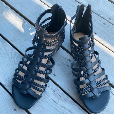 Nydelige svarte sandaler med borrelåslukking, gode tykke såler og fllott strasspynt. Tror ikke de er brukt, de ser i hvert fall ut som nye. Str 38. Kan sendes med Postnord (69 kr) eller Fiks ferdig.
