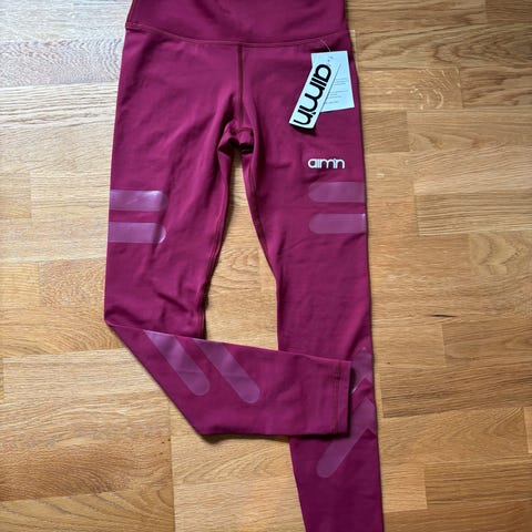 Pent brukt burgunderrødt treningssett fra Aim’n i str. XS selges pga. opprydning. Settet er kun brukt et par ganger. Tightsen er tettsittende med god strikk i livet og over hoftene (koster ca. 600 kr ny). Toppen har padding og gir god støtte.