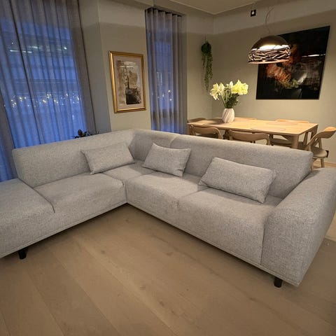 Super fin hjørnesofa kjøpt nytt hos Bolia. Et par år gammelt. Pent og godt vedlikeholdt. Ingen skader eller flekker. Røykfri hus.
