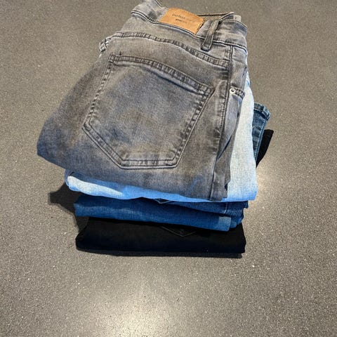 Tilsammen seks jeans- selges samlet eller hver for seg - 200kr per bukse. Billigere ved kjøp av flere.