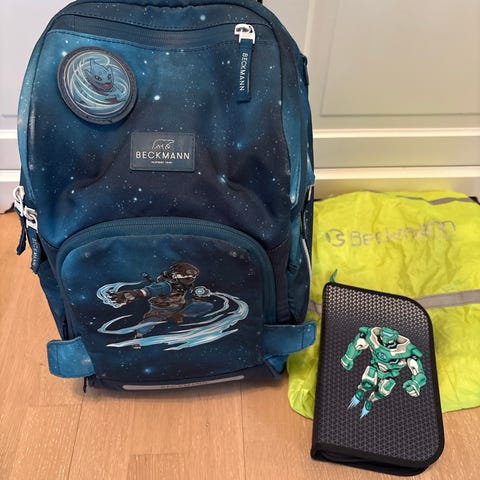 Med pennal og regntrekk, uten brystropper (bare en del)