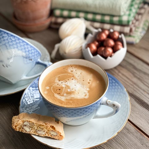 Har 4 kaffe latte kopper, 3 espresso ( te lys / eggeglass ) og en liten mugge i dette mønsteret