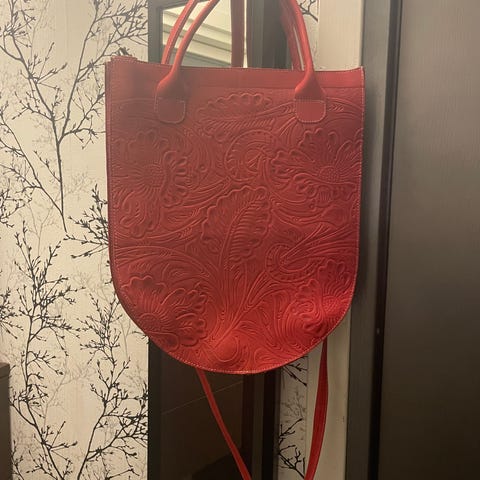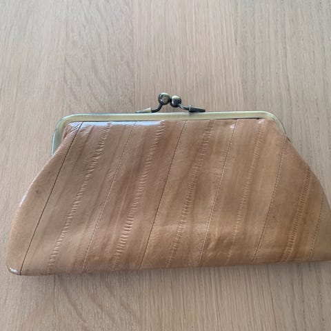 Stilig rød liten clutch i åleskinn fra Becksøndergaard. Kan brukes som liten clutch eller lommebok.