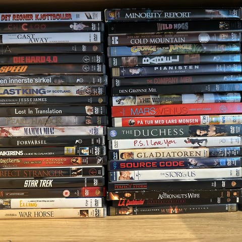 - 10 DVD-er: 100 kr (kr 10 pr film)