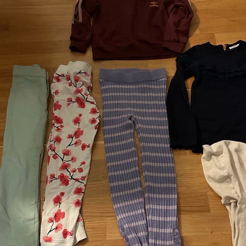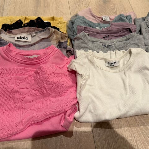 Pent brukte klær i 110, 110/116 og 116 selges samlet. 19 plagg. Alt er kjøpt nytt og brukt av ett barn. Det meste er lite brukt.