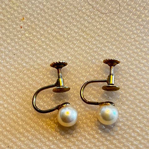 Vintage øreskruer/ørepynt med ravfarget glass