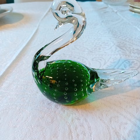 Selger min flotte fisk i grønt glass .Flott figur,nydelig å se på. Høyde ca 8 cm..Kan pakkes godt og sendes mot frakt