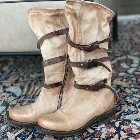 A.S.98 er et italiensk merke som håndlager unike kvalitetssko i skinn. Skinnet i fronten er tett flettet, de lukkes med glidelås og kan tilpasses noe ved hjelp av 2 remmer. Nypris var rundt 3000kr. Klarte ikke å finne lignende på nettet, så her vil du få en skikkelig unik skatt. #gabilagg