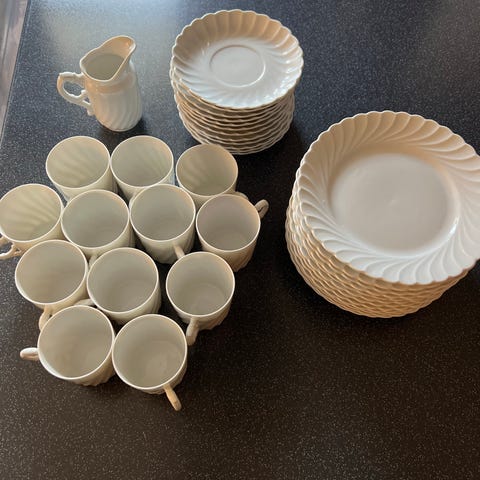Ubrukt Porsgrund porselen Bogstad stemor servise. Helt uten skader eller slitasje. Stått ubrukt i kjøkkenskapet i 30+ år. Denne serien produseres ikke lengre.