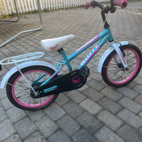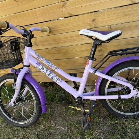 Brukt barnesykkel Diamant str 16 selges , trenger en vask og selges som den er- lilla farge , passer alder 4-5 år