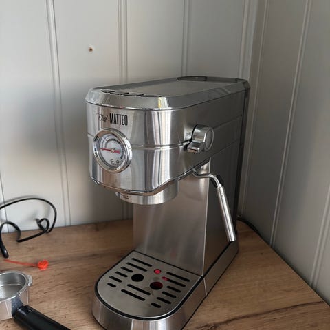 Brukt 3 ganger så lagret inne i bod da vi ikke drakk mer kaffe.