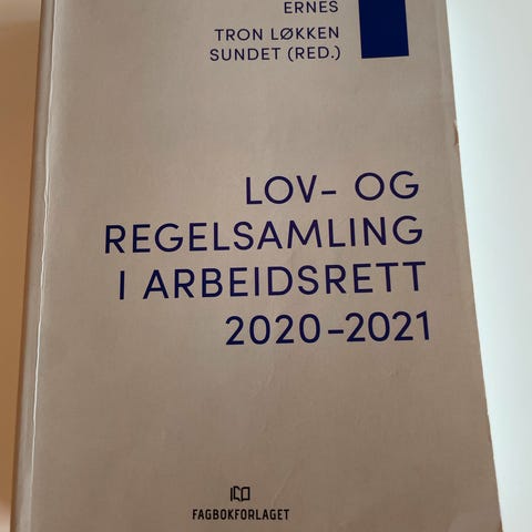 Lov og regelsamling i arbeidsrett 2020-2021. Kjell Ove Ernes og Trond Løkken sundet. Pris 100kr