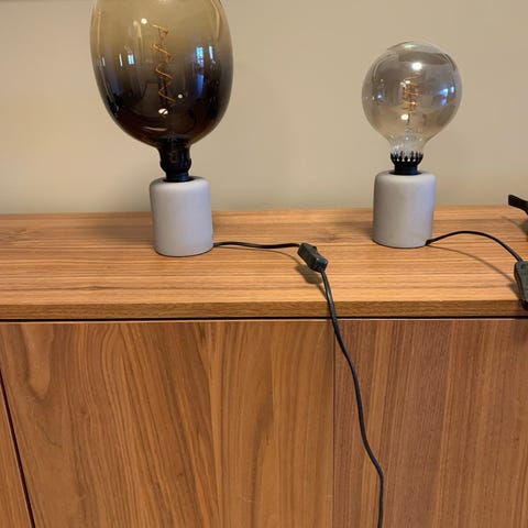 IKEA Marby bordlampe. Glass og kremfarget lampeskjerm. Pent brukt. H 33cm.