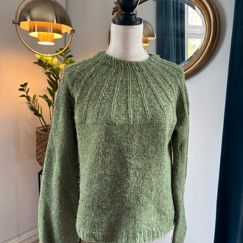 Håndstrikket genser med tidløst design, uten side sømmer, laget av naturlig høykvalitets ull.