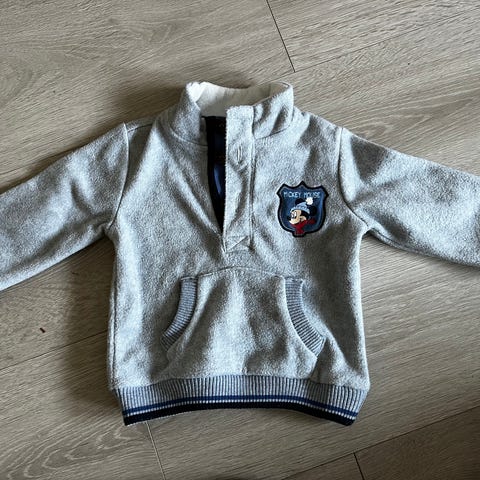 Kjempesøt fleeze genser med bamsemotiv og glidelås I hals