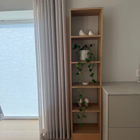 Selger fire modulbaserte vegghengte hyller i moderne, minimalistisk design. Perfekt til stue, kontor eller soverom. Gir et rent uttrykk og masse oppbevaringsplass uten å ta opp gulvplass.