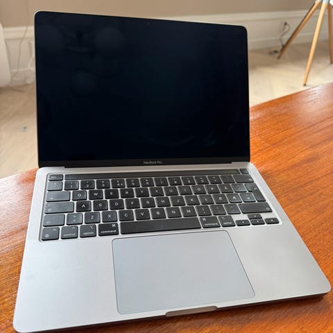 Strøken Macbook Pro 13 M1 8/512, kun 21 ladesykluser og 98% batterikapasitet