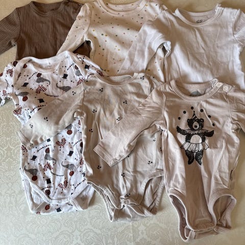 Pent brukt. Tskjorter er i størrelse 80, resten 86. Ingen flekker.