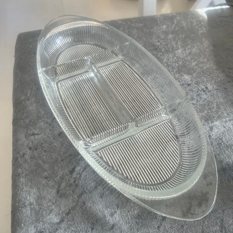 Stor vintage Pyrex France ildfast form,med stativ i sølvfarge