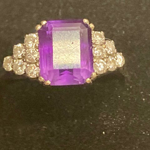 Peridot edelsten omkranset av diamanter og gult 585 gull