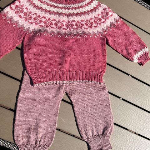 Hjemmestrikket sett str 98 snøløvsett