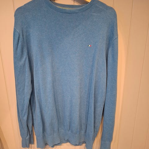 Strikkegenser fra dressmann i Large. 50% bomull, 50% ull. Grå i fargen.
