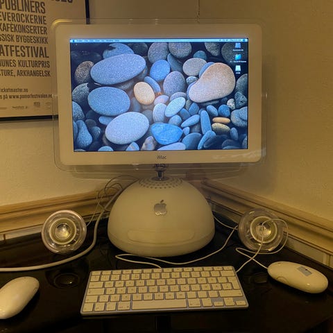 Klassikeren iMac G4, som er ca. 20 år selges som et samleobjekt. Den er ikke brukt eller startet på flere år. Både høytalere, tastatur og mus medfølger. Selges grunnet flytting.