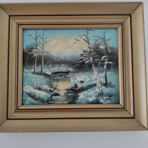 Originalt oljemaleri som fanger vinterens vakre ro – perfekt til både hjem og hytte.